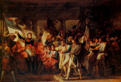 Le Marechal Ney remet au soldats du 76e regiment de logne leurs drapeaux