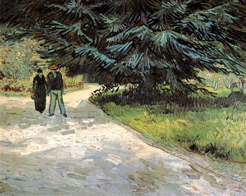 Public Garden with Couple and Blue Fir Tree The Poet s Garden III