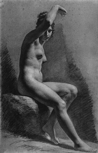 Femme nue assise, tournee vers la droite