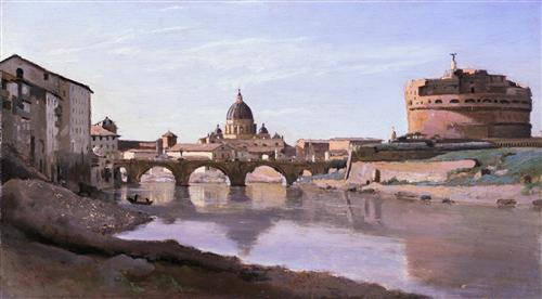 View of Rome - The Bridge and Castel Sant'Angelo with the Cuploa of St. Peter's