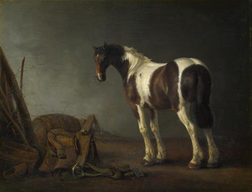 A Horse with a Saddle Beside it