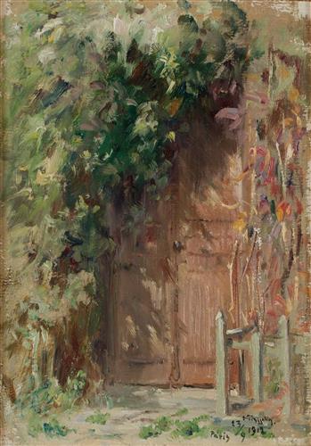 Tradgårdsmotiv med dörr