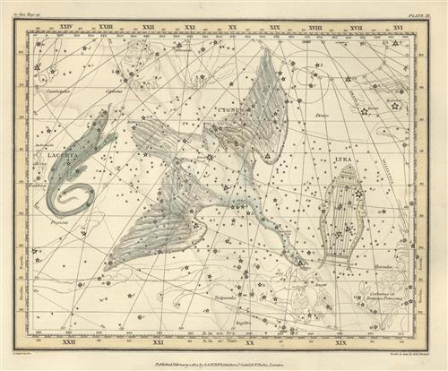 Уранография - Лебедь, Лира, Ящерица - Celestial Atlas