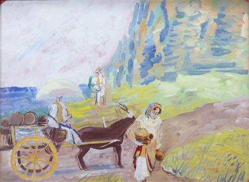 Figurer kring åsnekarra - sydlandskt motiv