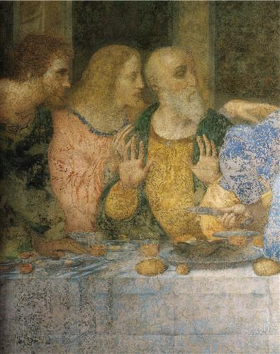 Тайная вечеря. Деталь. Фигуры слева - Ultima cena. Bartholomaeus, Iacobus Minor, Andreas.