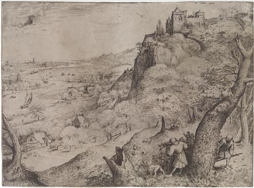 Альпийский пейзаж с охотой на зайцев
