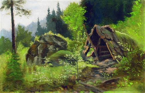 Шалаш в лесу