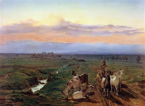 Вечерний Пейзаж со стадом коз - Evening landscape with herd of goats
