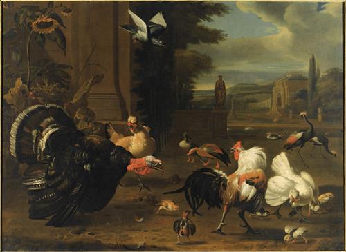Птичий концерт - A PALACE GARDEN WITH EXOTIC BIRDS AND FARMYARD FOWL bears