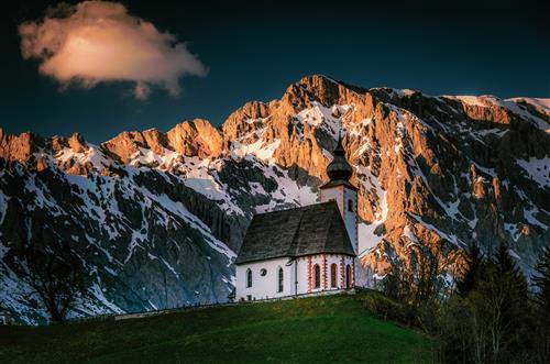 Церьковь, Альпы, горы, Швейцария, луг - Church, Alps, mountains, Switzerland, meadow
