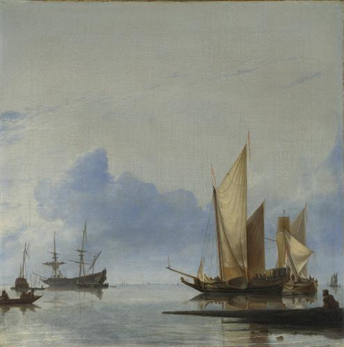 A Dutch Yacht and Other Vessels Becalmed near the Shore